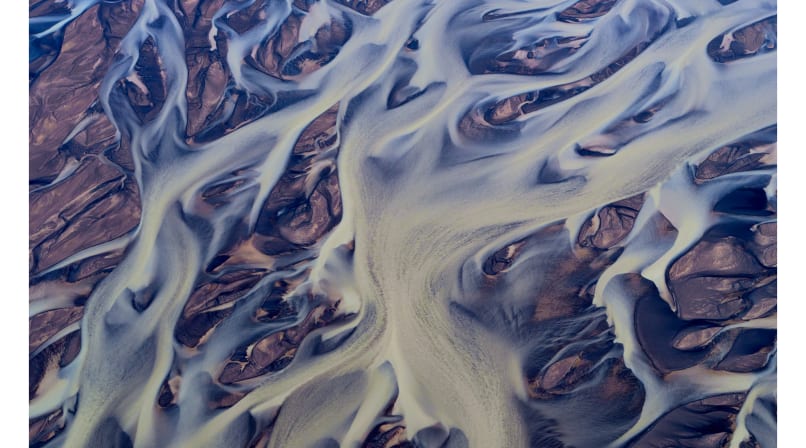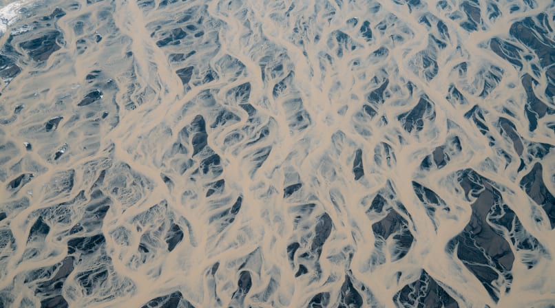 - Admire intricate patterns of black sand, silt, and meltwater from above.