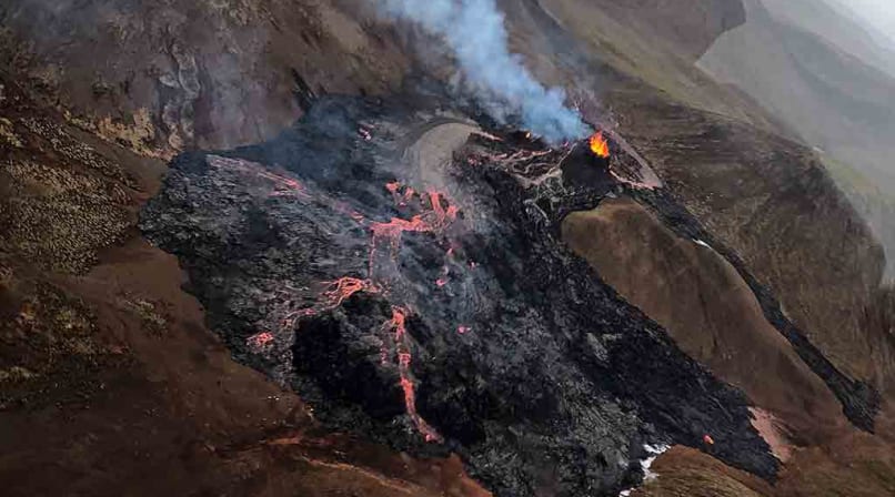 Fly above the 2021–2025 Reykjanes eruption sites.