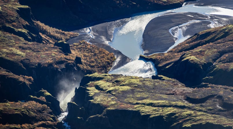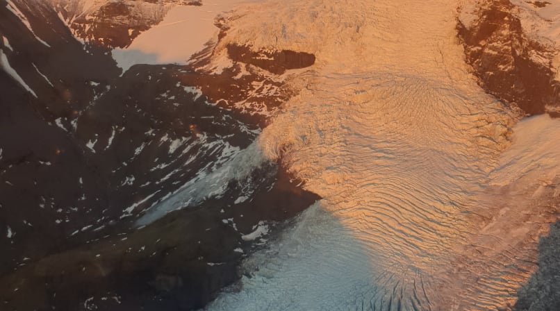 - Fly along Vatnajökull’s dramatic icefalls and ridges.