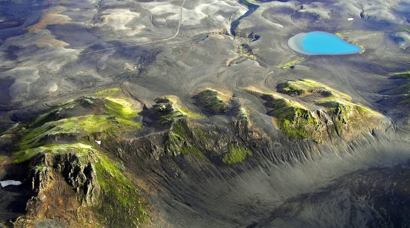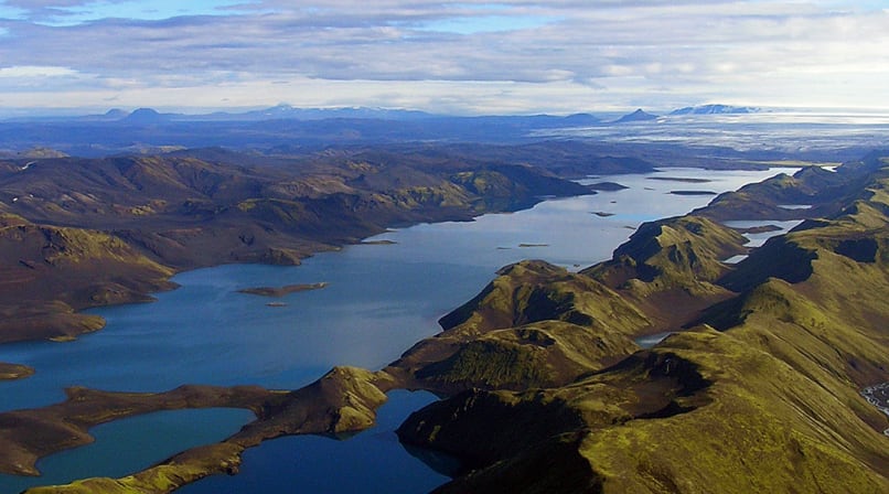 From Landmannalaugar we fly over Langisjór, a 20 km long lake up in the highlands, 670 m above sea level, and the Lakagígar crater chain. A 25 km long row of about 135 craters, formed in the years 1783-1784, during one of the largest volcanic eruptions in recorded history. During the 8-month eruption period, it is estimated it poured out 42 billion tons (14 km3) of basalt lava and clouds of poisonous gases and ash that led to the death of 50% of Iceland's livestock, and almost a third of the Icelandic nation died. Furthermore, the eruption in Lakagígar and its aftermath have been linked to some global events.