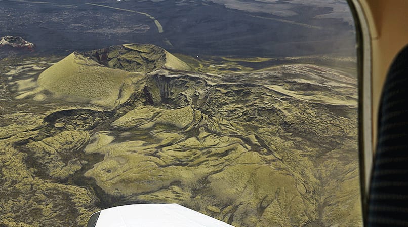 On arrival at Skaftafell Terminal please check in at our reception. There you will meet with your pilot that will go over the flight route and perform a safety briefing before heading out to the aircraft. Once in the air, we fly west of Vatnajökull National Park over the vast ice sheet of Skeiðarárjökull, one of many outlet glaciers of Vatnajökull, Europe‘s largest glacier, on the way over to Lakagígar crater chain, a massive row of volcanic craters spreading as long as the eye can see. We firmly believe that flying over the Laki Craters is the only way to truly appreciate their staggering scale.